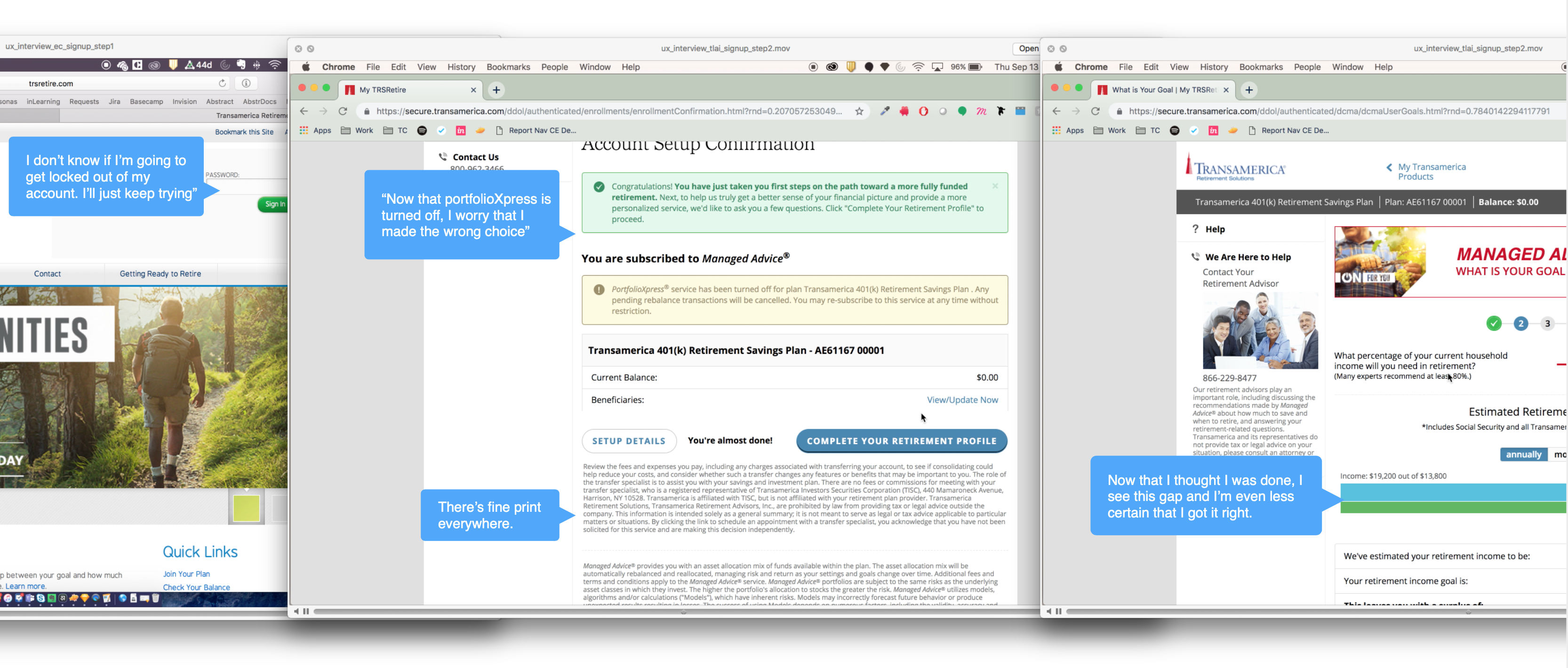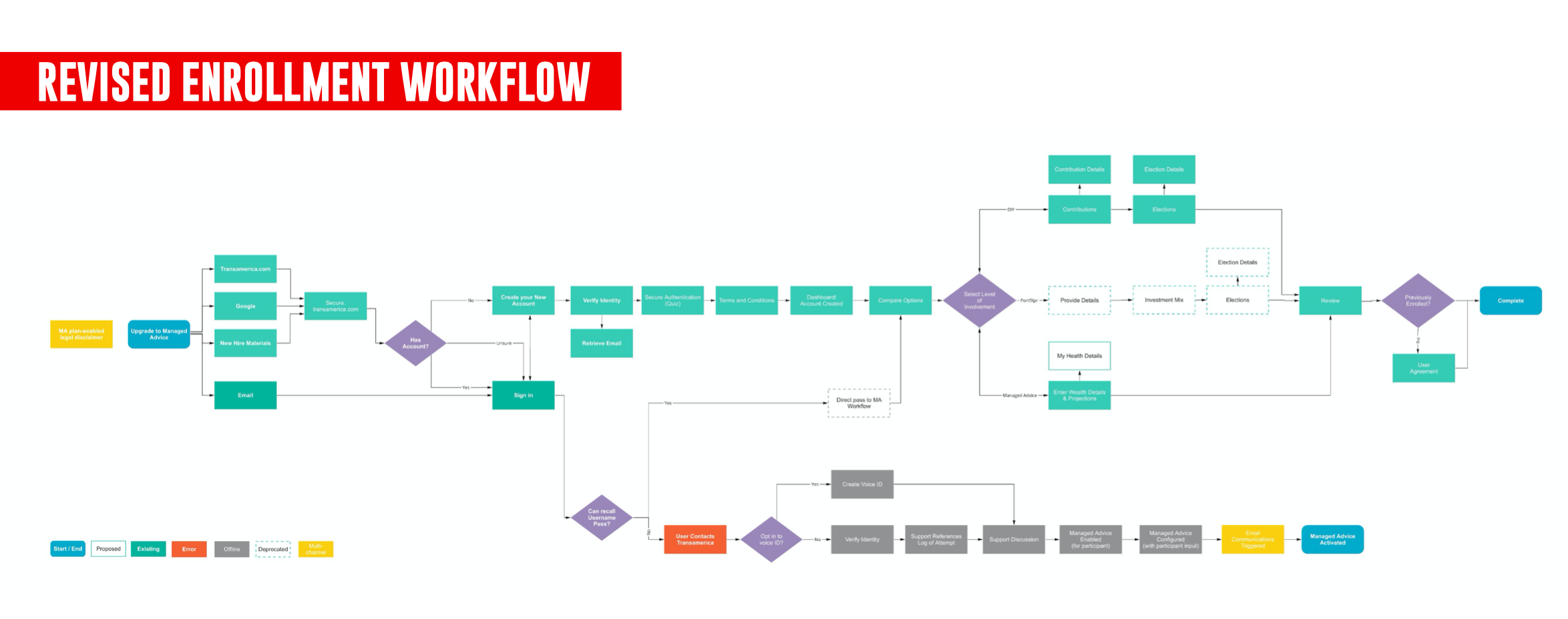 I brought the product and development teams along early and often from inception, through the research phase, and in to planning. As we all had a shared understanding of the usage and pain points, we were able to develop our benchmarks and KPIs to establish a collective set of outcomes we were looking to drive through our digital experience. We determined the average cost of support calls, the percentage of failed signups, and determined that there were significant operational savings, retention opportunities, and gains with regard to assets under management associated with improving completion rates by as little as 10%.